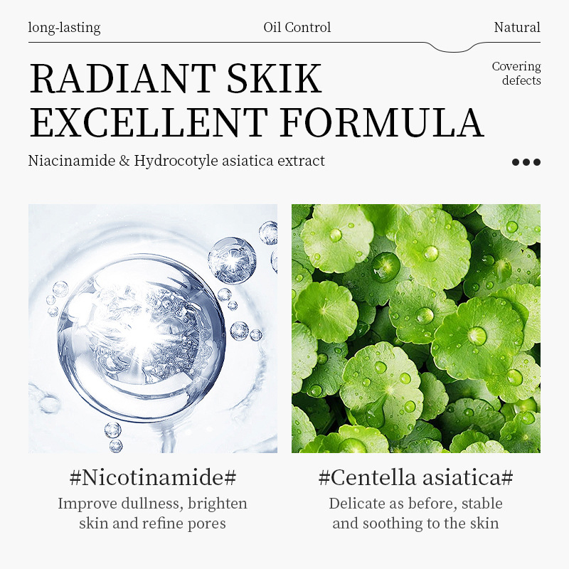 2. Formulated with Niacinamide and Centella Asiatica extract, it brightens dull skin, refines texture, and soothes irritation while providing long-lasting oil control for a fresh, shine-free complexion.