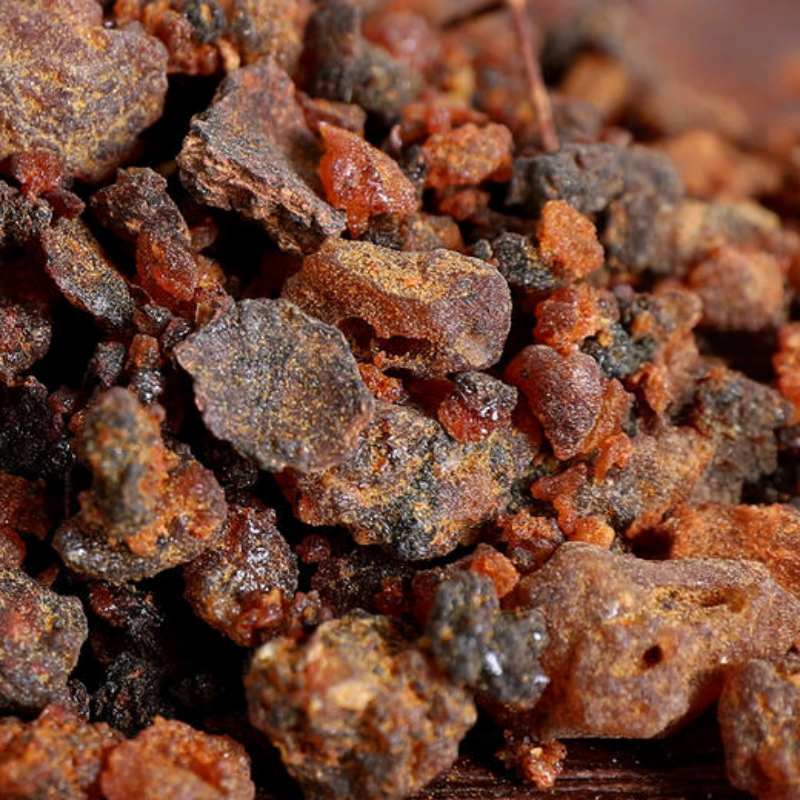 Myrrh essential oil, steam-distilled from the precious reddish-brown resin of the Commiphora myrrha tree, exudes an intensely warm, bitter, smoky, and balsamic aroma with deep medicinal undertones. Revered for millennia as a supreme wound healer and sacred incense, this profound resinous oil is cherished in both skincare and aromatherapy for its unparalleled ability to regenerate tissue, purify the atmosphere, and instill a profound sense of grounded tranquility.